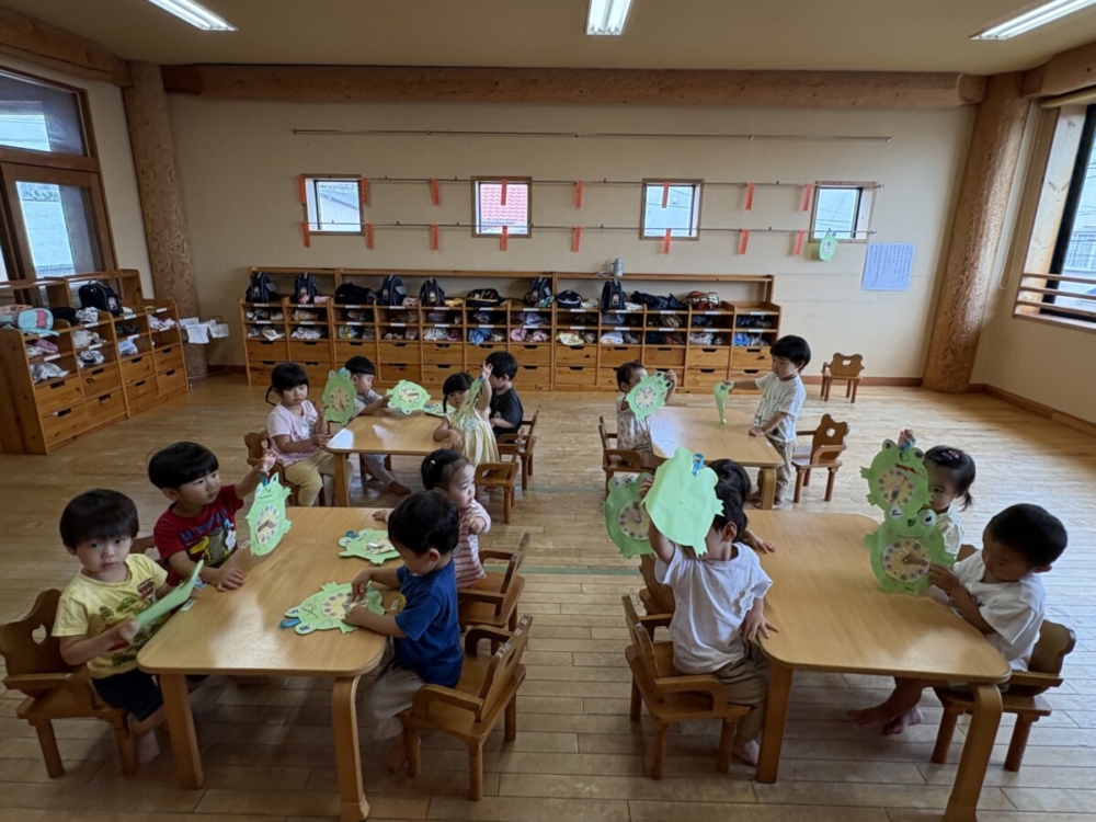 BLOG BLOG 森の木:雨にも負けない森っ子!(江口) 2025.6.10 今日は、朝から大雨でしたね。 今の時期によく見る、「カタツムリ」!! 年少は、色を塗りましたよ。 「でーんでんむーしむし~」と、歌い 手でカタツムリを作る姿も見られました。 年長は、バルーンで遊びました。 花火をあげましたよ! そして今日は、「時の記念日」 自分で作った時計で遊びました! 本日のパピーカフェは、「ハンドマッサージ」でした。 お母さん達が癒されていました。 明日は、FREE DAYです!お待ちしています。 < PREVNEXT > NEW 2025.12.13 くすの木:今日の先… 2025.12.12 森の木:寒さに負け… 2025.12.11 くすの木:久しぶり… 2025.12.10 森の木:12月と言… 2025.12.9 くすの木:もちつき… 2025.12.8 茨城県からお客様来… 2025.12.7 森の木:目標に向か… 2025.12.5 森の木:パピーマル… 2025.12.4 くすの木:年中じゃ… CATEGORY 理事長BLOG つぶやき プライベート 未分類 BLOG 休日のつぶやき 先生のこと 保育のこと お知らせ リクルート 保育について 先生について 実習・採用について 森の木幼稚園 くすの木幼稚園 もみの木幼稚園 迷子の子育て くすの木学童塾 保護者の応援 ARCHIVE 2025年 2024年 検索