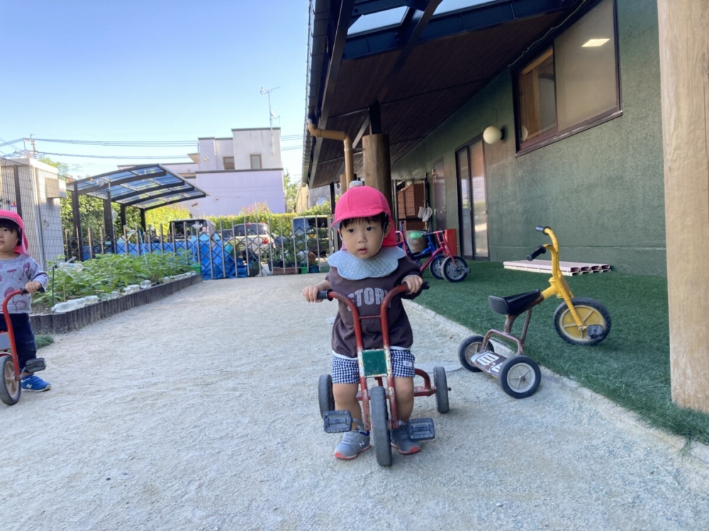 大きな三輪車ではお友達を乗せたり、乗ったりと
