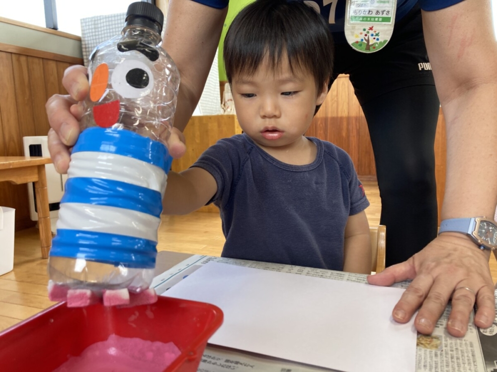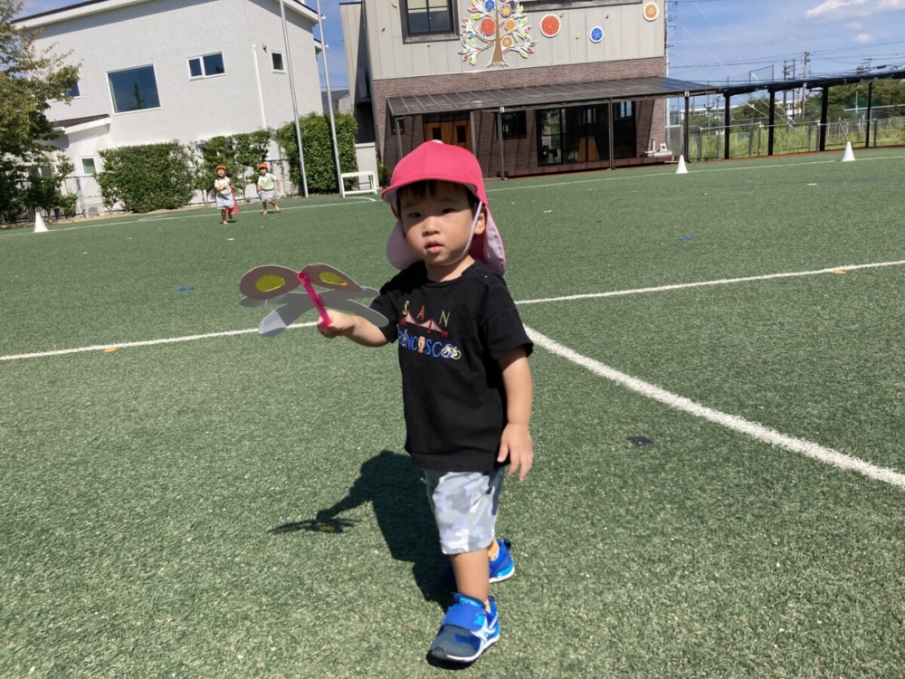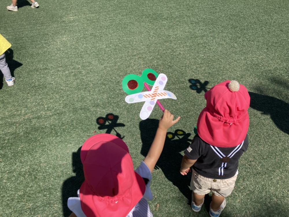作っためがねを持って『とんぼのめがね♪』を歌いながら