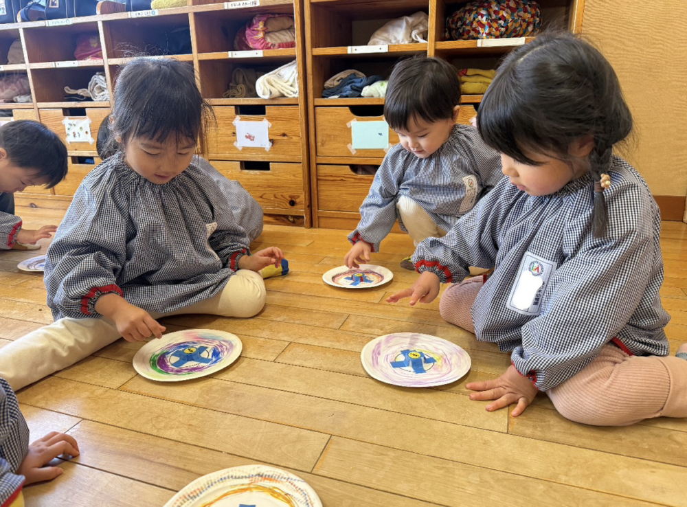 紙皿でこま作りもしました。