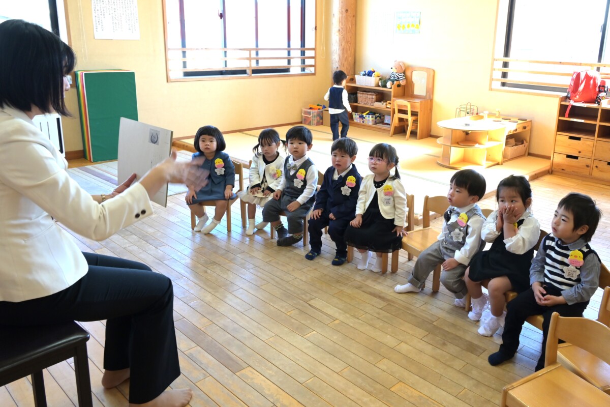 新入園児を迎えることができ、大変嬉しかったです。 担任の先生にバッジをつけてもらい、
