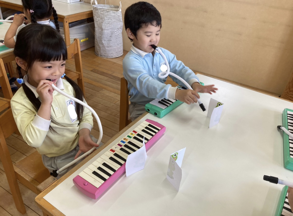 初めて鍵盤ハーモニカをしましたよ。