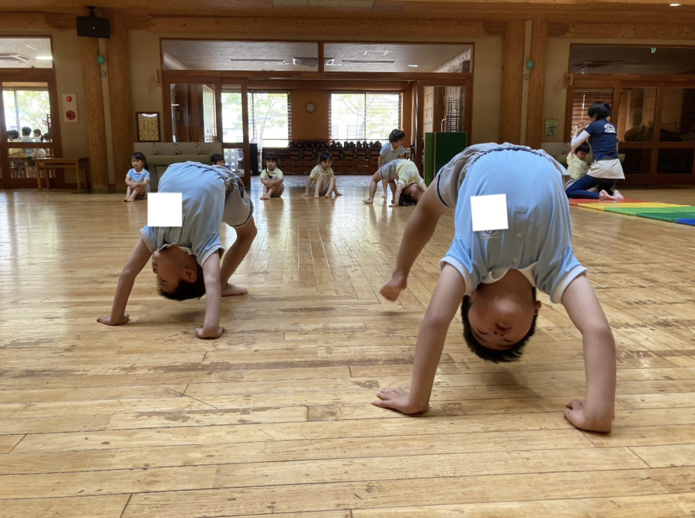 新しいクラスでの体操が始まりました。