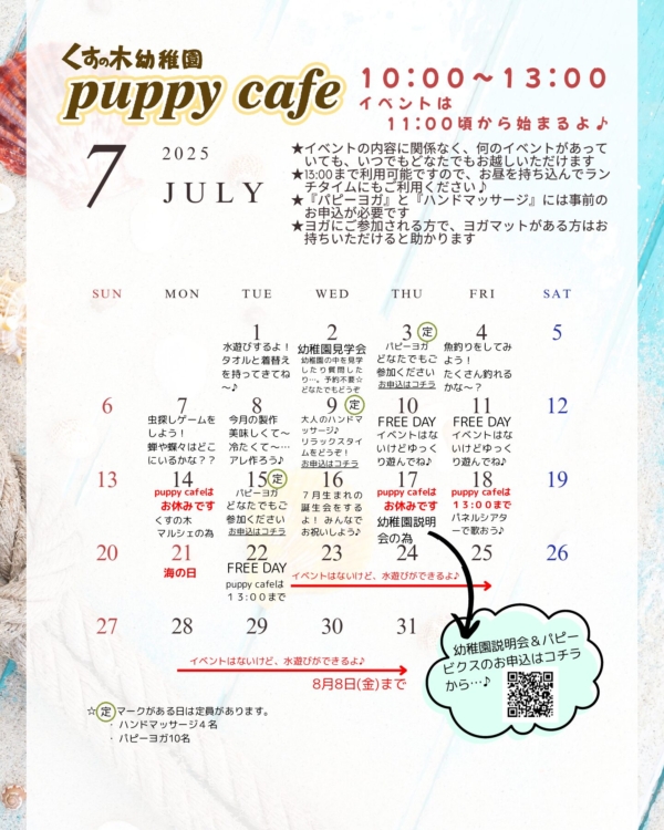 NEWS くすの木7月カレンダー 2025.6.26 < PREV NEW 2025.12.4 ★森の木幼稚園pu… 2025.11.30 森の木幼稚園12月… 2025.11.28 puppy caf… 2025.11.28 くすの木幼稚園12… 2025.10.6 くすの木幼稚園で1… 2025.10.6 入園説明会のご案内 2025.10.2 PUPPY FES… 2025.9.30 puppy caf… 2025.9.26 保護者の皆様へ く… CATEGORY 森の木 くすの木 もみの木 2園から リクルート 未就園児クラス その他 ARCHIVE 2025年 2024年 2023年 2022年 2021年 2020年 2019年 検索