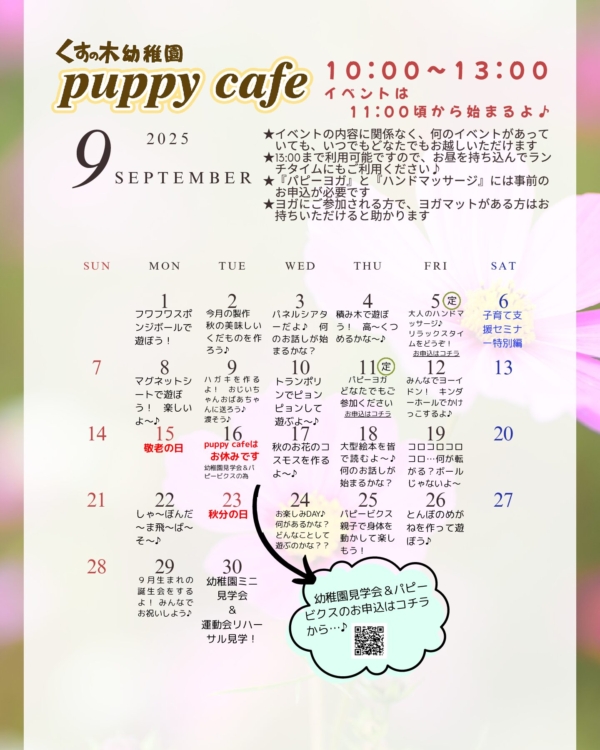 NEWS カフェカレ2025 (28) 2025.8.29 < PREV NEW 2025.12.4 ★森の木幼稚園pu… 2025.11.30 森の木幼稚園12月… 2025.11.28 puppy caf… 2025.11.28 くすの木幼稚園12… 2025.10.6 くすの木幼稚園で1… 2025.10.6 入園説明会のご案内 2025.10.2 PUPPY FES… 2025.9.30 puppy caf… 2025.9.26 保護者の皆様へ く… CATEGORY 森の木 くすの木 もみの木 2園から リクルート 未就園児クラス その他 ARCHIVE 2025年 2024年 2023年 2022年 2021年 2020年 2019年 検索
