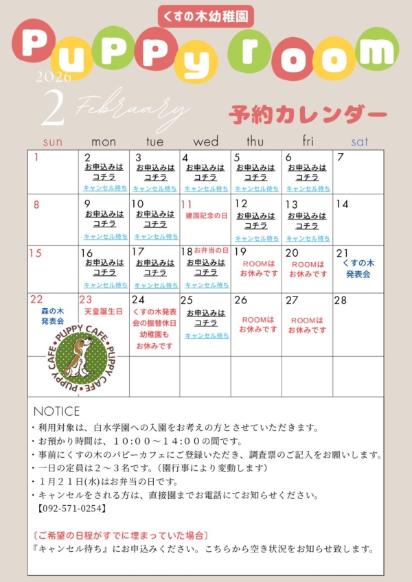 NEWS くすの木puppyroom2月予約カレンダー 2025.12.26 < PREV NEW 2026.1.30 puppy caf… 2025.12.26 くすの木幼稚園2月… 2025.12.8 12月10日(水)… 2025.12.4 ★森の木幼稚園pu… 2025.10.6 くすの木幼稚園で1… 2025.10.6 入園説明会のご案内 2025.10.2 PUPPY FES… 2025.9.30 puppy caf… 2025.9.26 保護者の皆様へ く… CATEGORY 森の木 くすの木 もみの木 2園から リクルート 未就園児クラス その他 ARCHIVE 2026年 2025年 2024年 2023年 2022年 2021年 2020年 2019年 検索