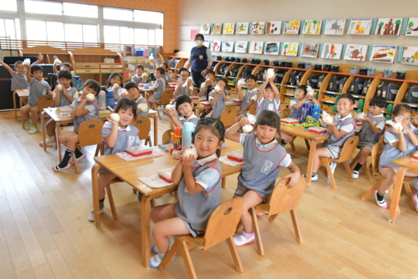 そして!今日の給食は年長組が田植えをしたり、稲刈りをしたりと