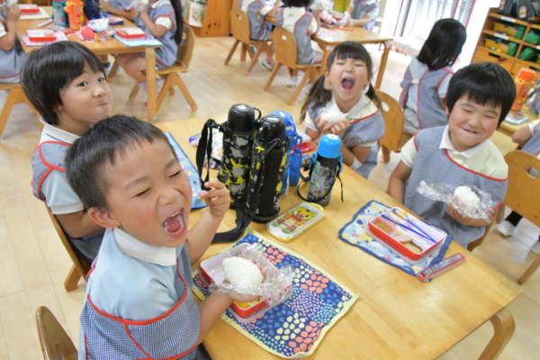 年長組は自分達で育てたお米でおにぎりを作りました。