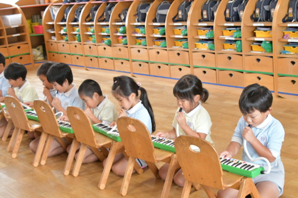 年長は鍵盤ハーモニカを一生懸命練習をしています!