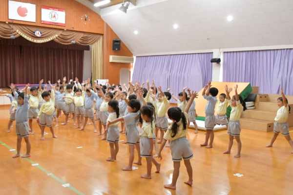 年中組は、初めてキンダーホールで