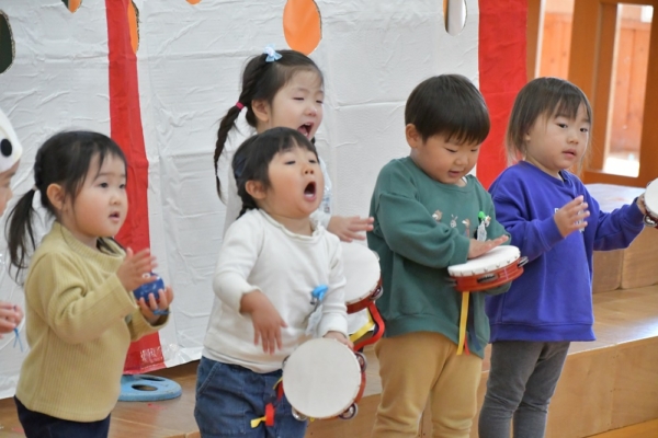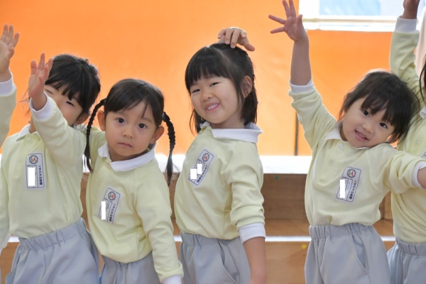 朝の自由遊びでは、園庭でミュージカルごっこが