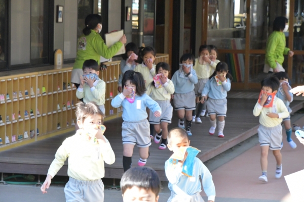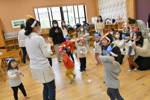 鬼のお面を被っている田中先生をやっつけたそうです!