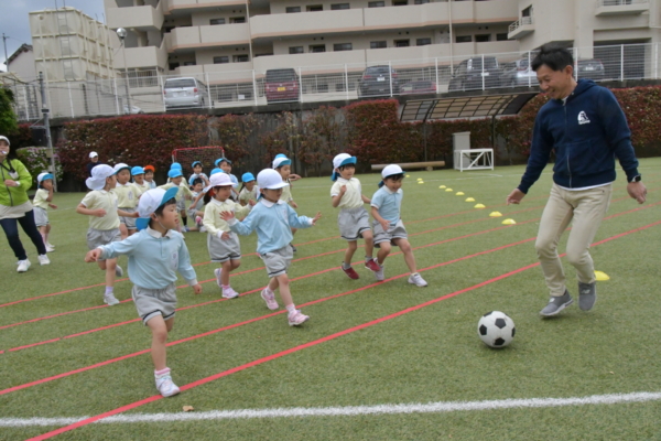 園長先生からボールを奪おうと