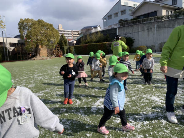 「わぁ~冷たぁ~い」「雪だるま作ろう!」