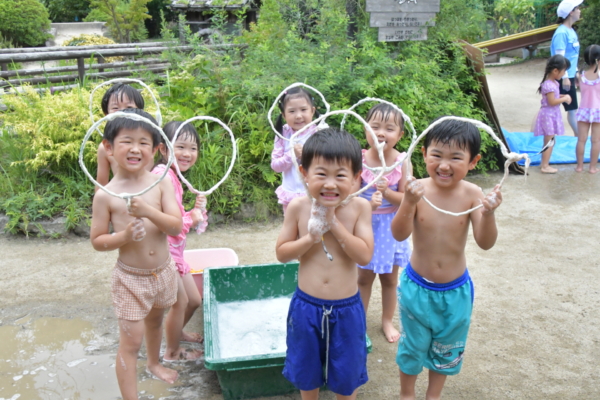 みんなで水の掛け合いをしたり、ゲームをしたり…