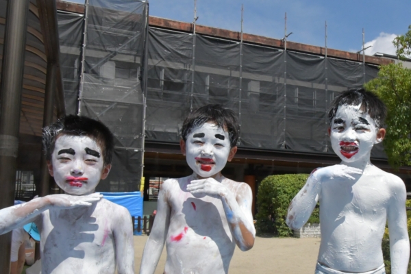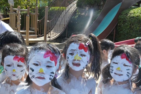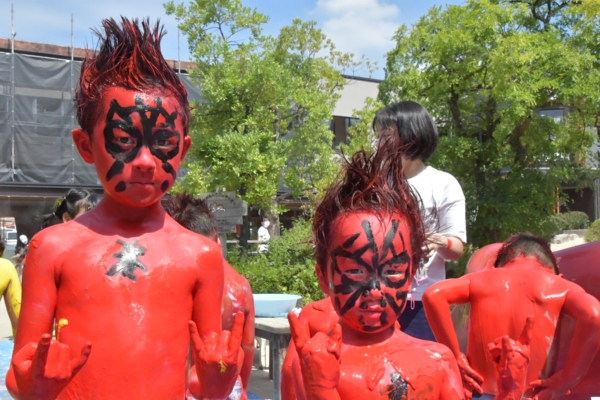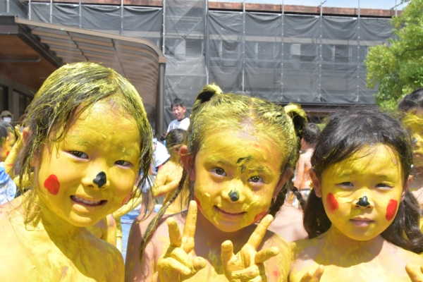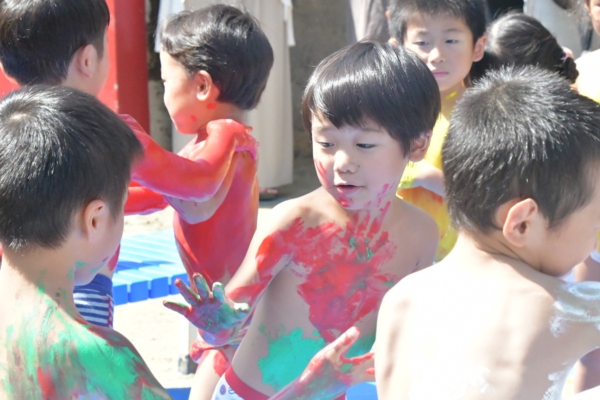 色々な色を体に塗って