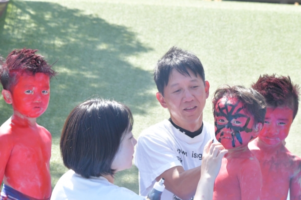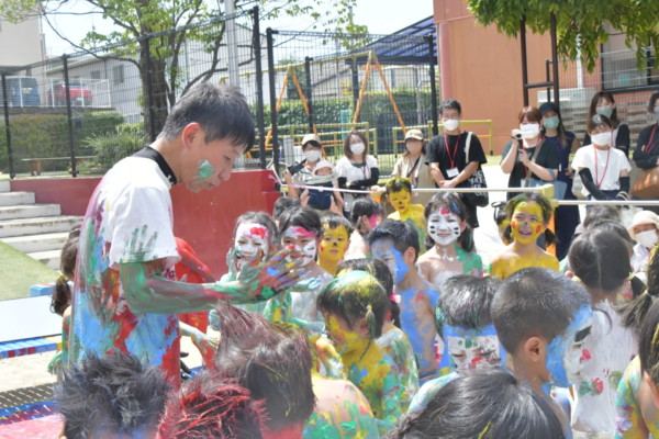 園長先生にも絵の具を付けて、