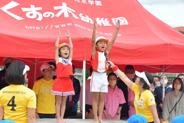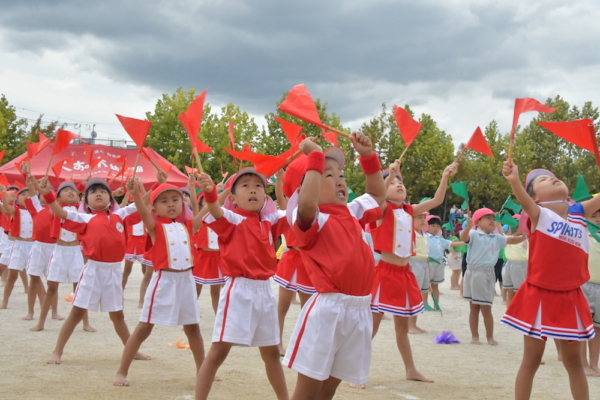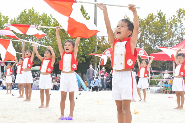 赤・緑・黄の旗が風を切る音と、全力の声が響き渡りました。