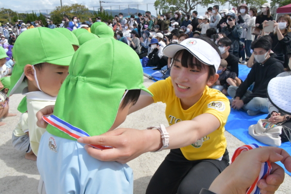 最後は、ご褒美のメダルを大好きな先生にかけてもらいました。