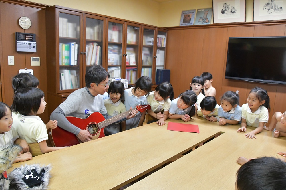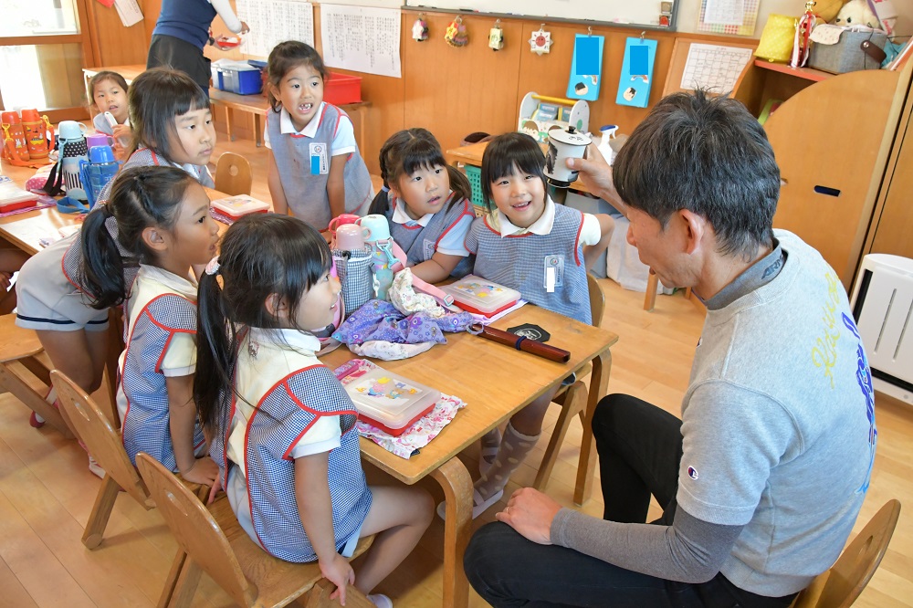園長先生の湯飲みの「坂本龍馬」に興味津々!!