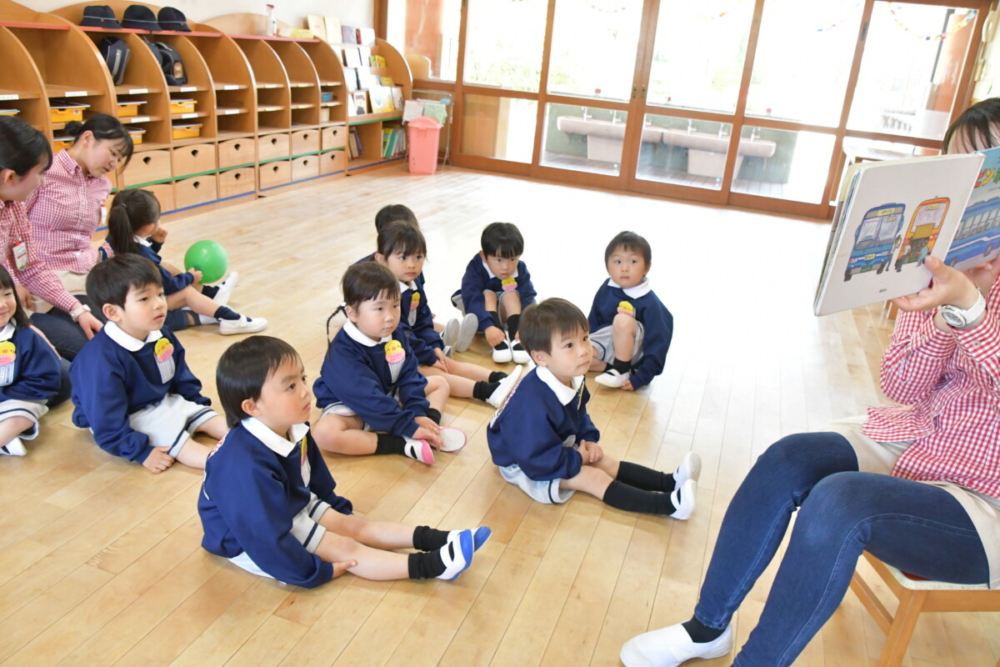 先生が読んでくれた絵本に釘付け!