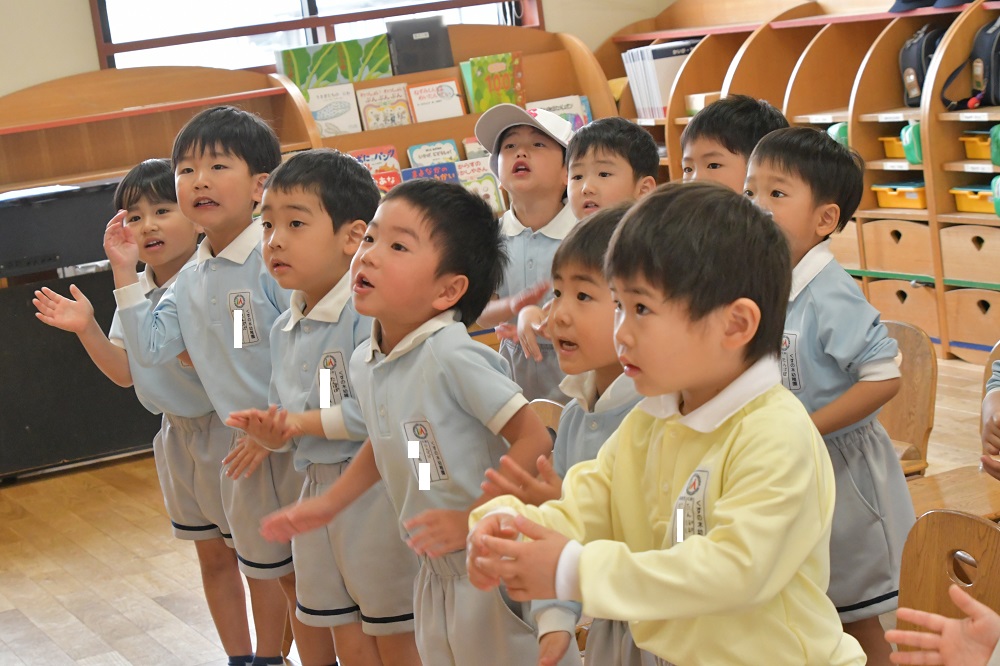園歌を歌ったり、返事をしたり