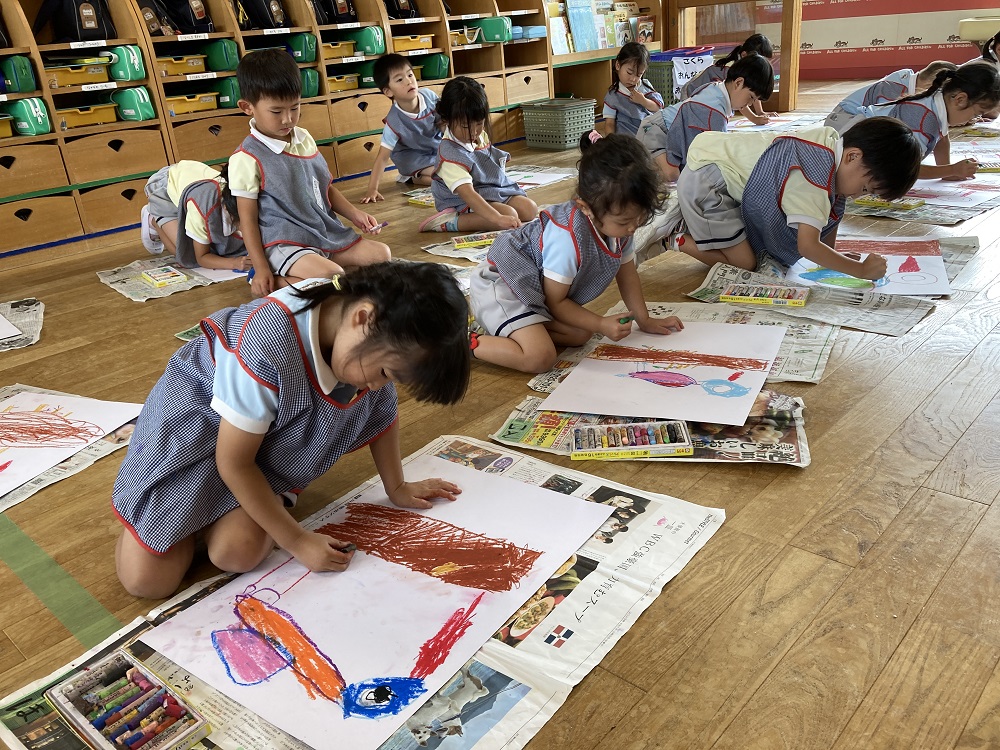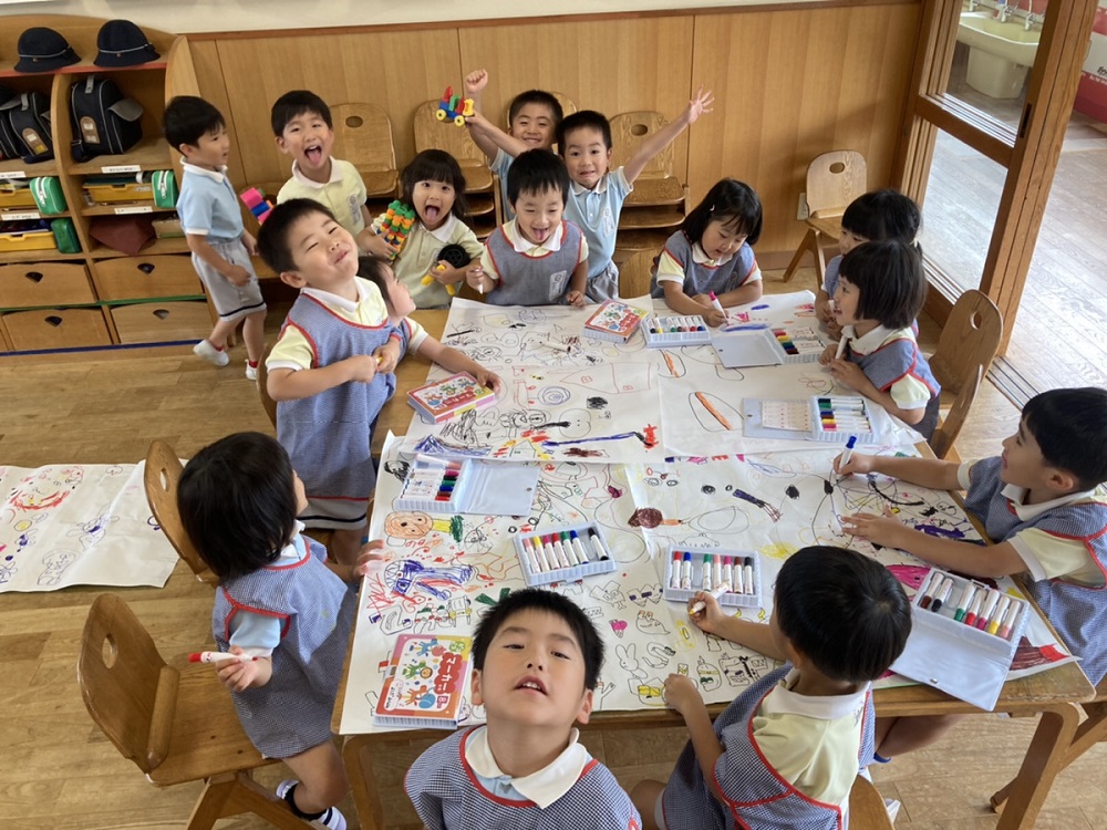 たんぽぽ組はみんなで大きな紙に絵を描いていましたよ