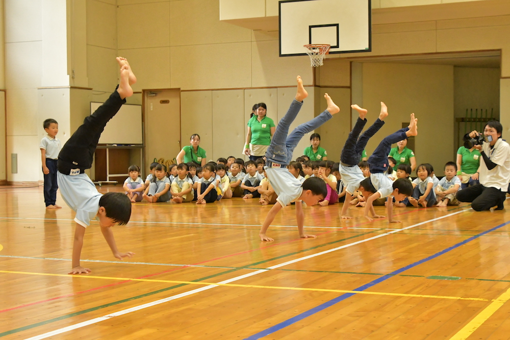 前回転や逆立ち歩きの発表もしました。