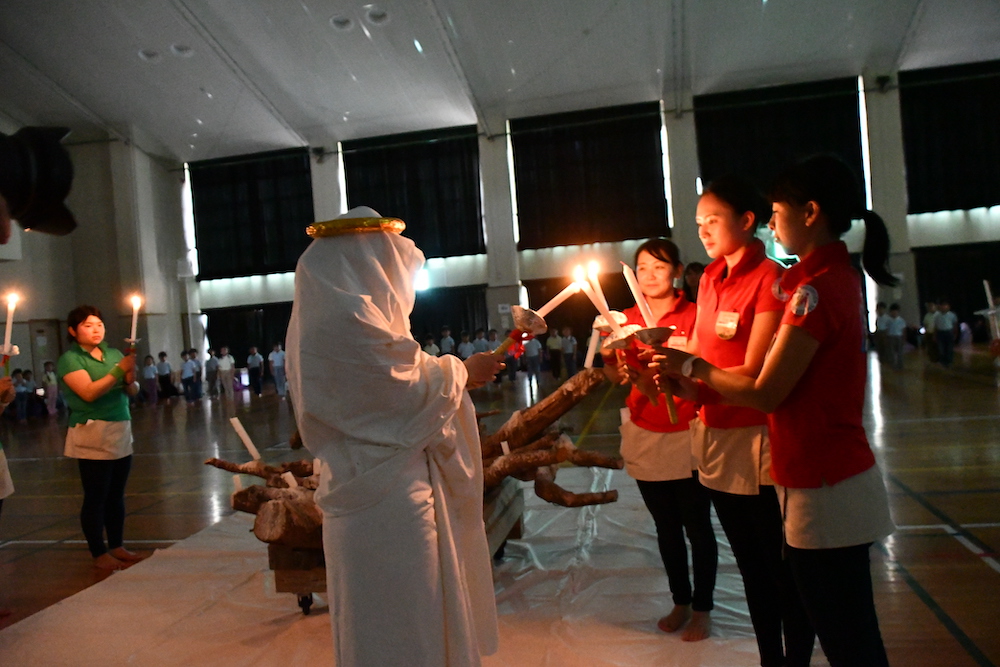 先生達が火をもらい