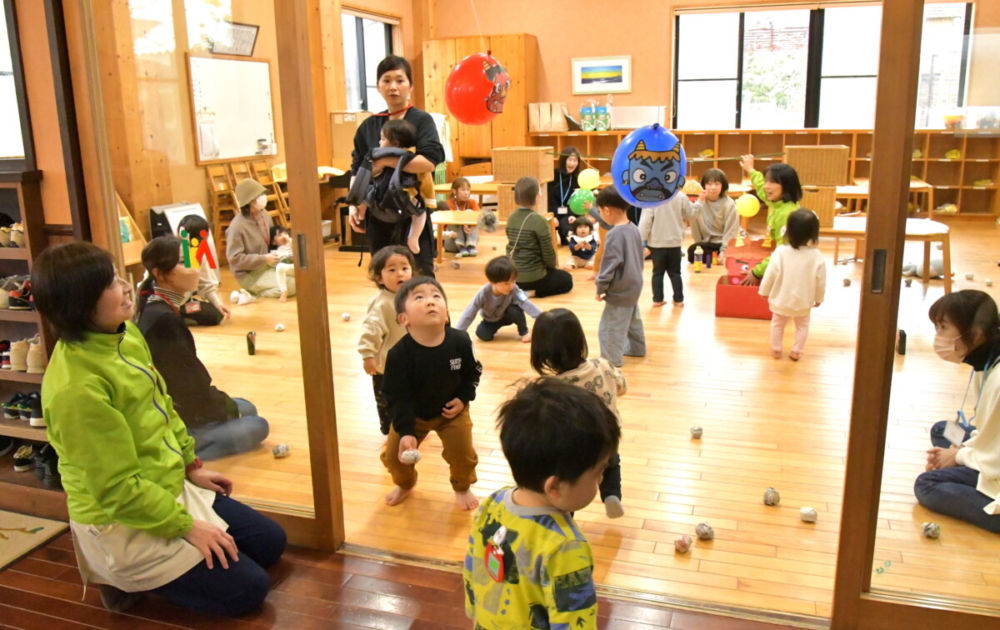 みんなで豆まきゲームをしました!
