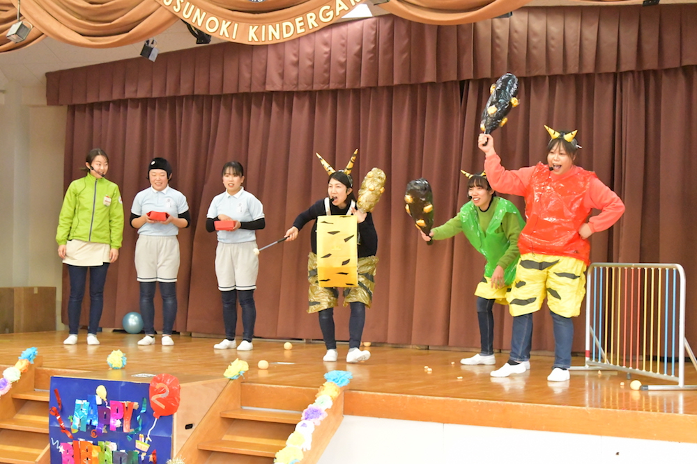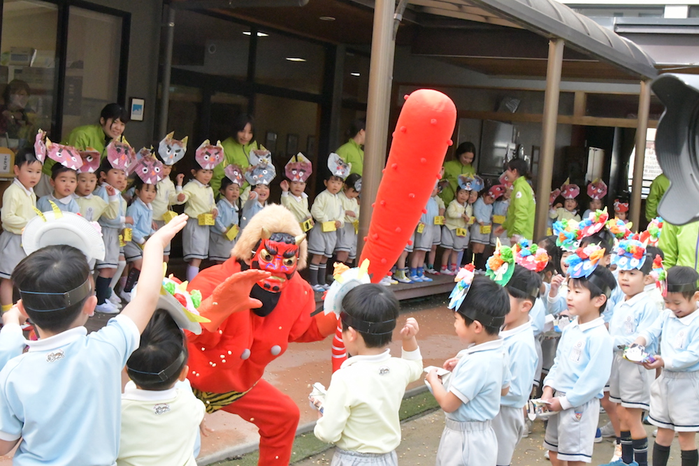 「豆を投げて鬼を退治する~!」