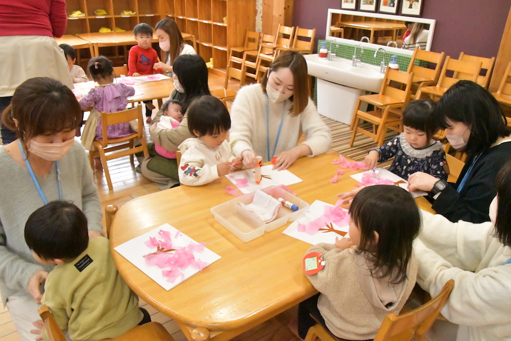 お母さんと一緒に桜を作りました。
