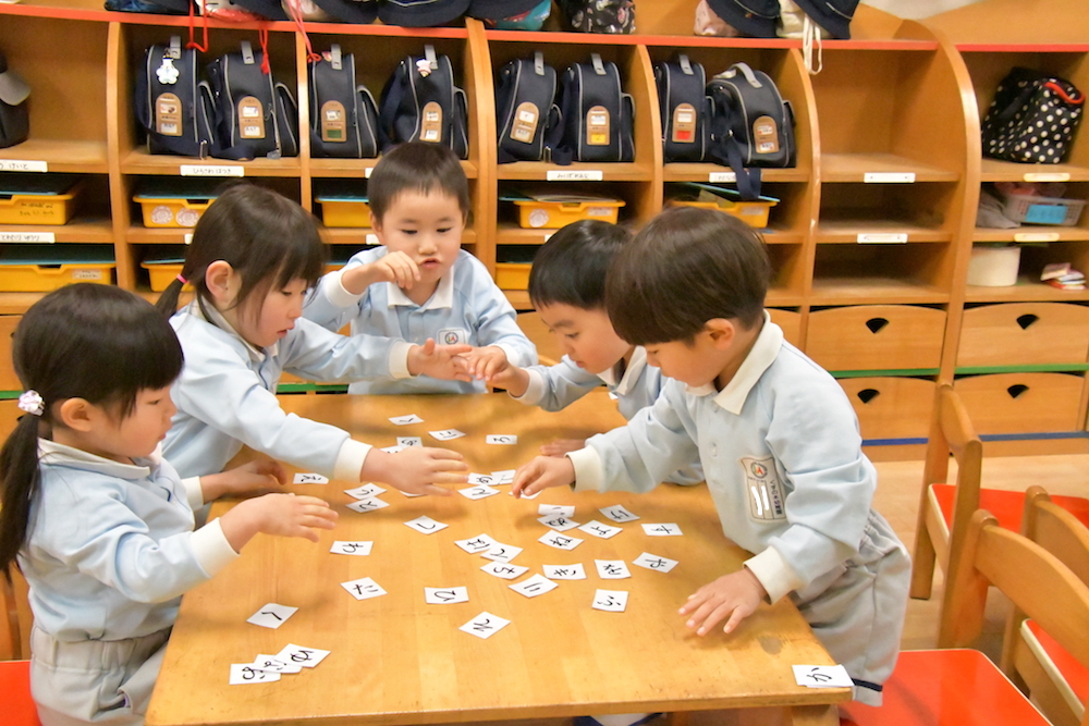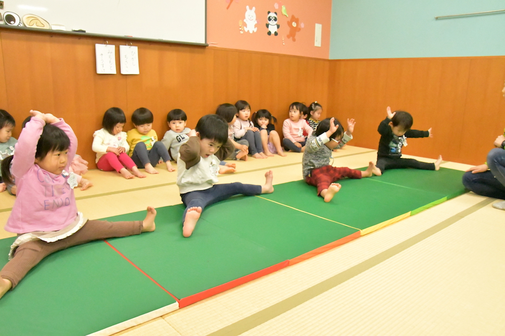 年長の体操発表を見て、「年長みたいに大きな声を出す!」と