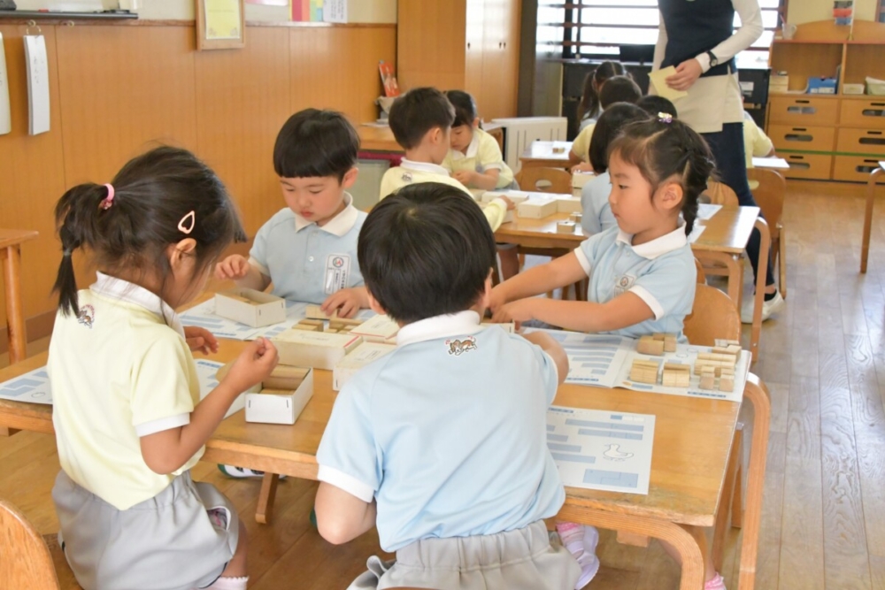 年中組は、初めて積み木をしました。