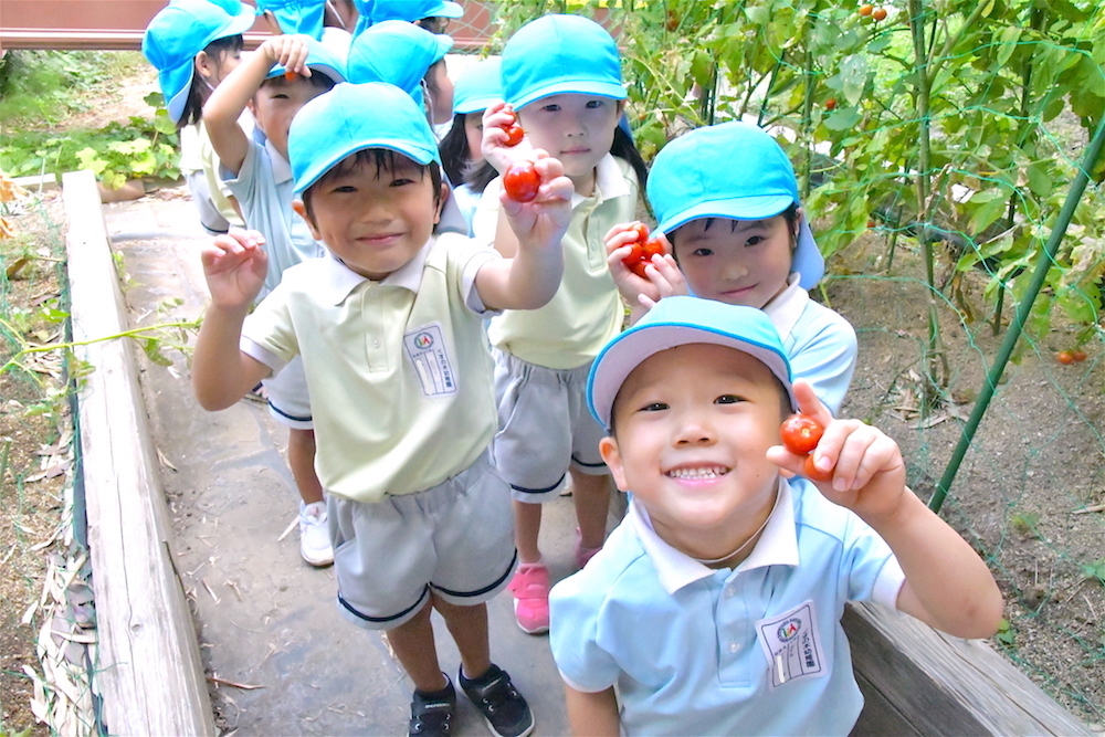 園庭には年中組が植えたトマトが