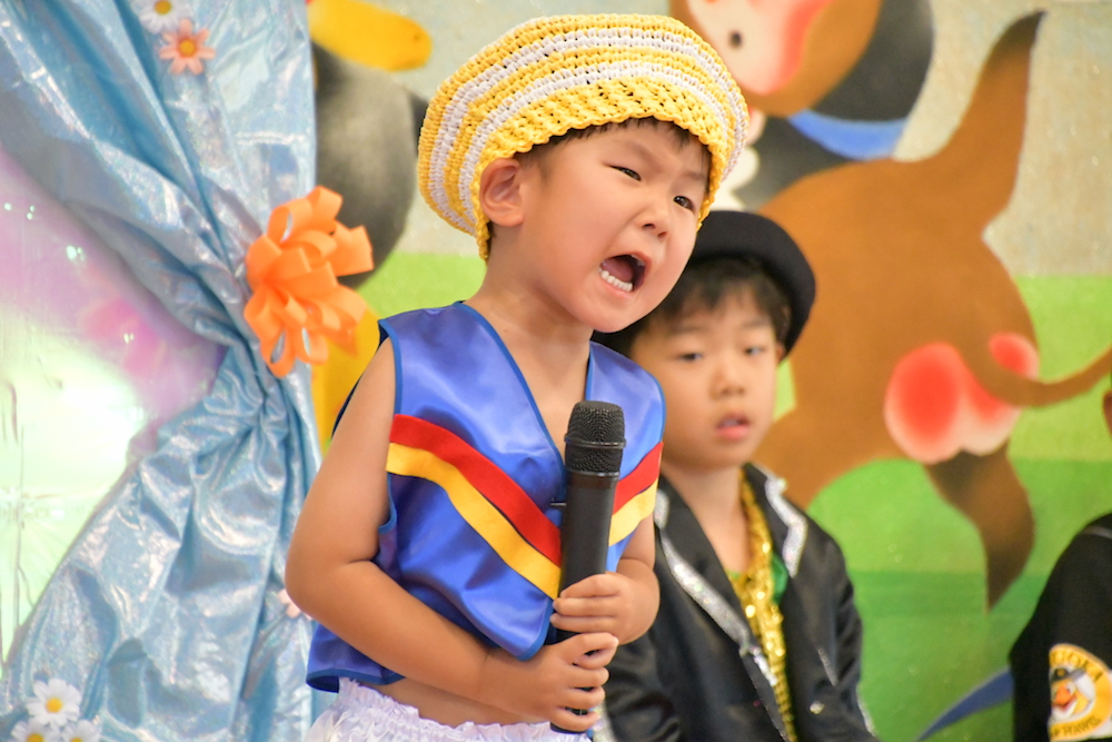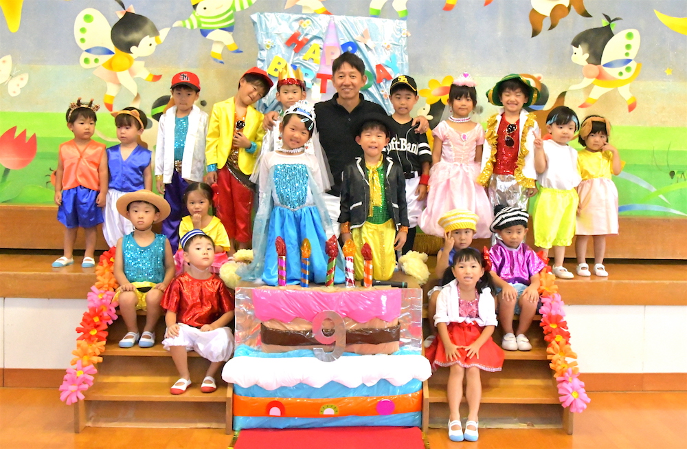 お腹いっぱいに給食を食べたら誕生会スタート!