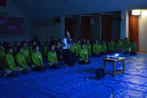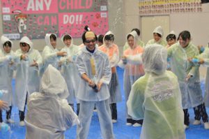 園長先生をキンダーホールに誘導するも