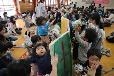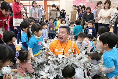 ナント!ちぎった新聞紙で東先生を埋めてしまいました~~!