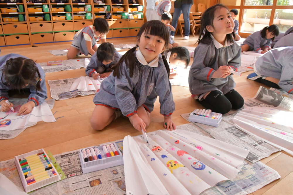 好きな絵を描いて凧を完成させました。