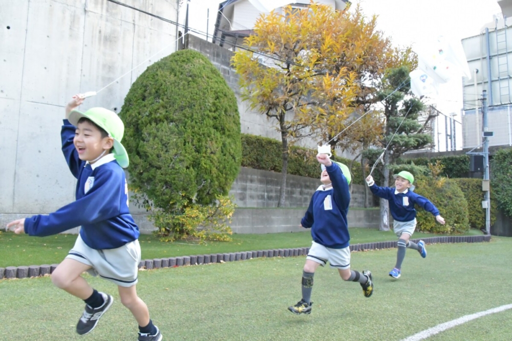年長組は凧揚げをしました。