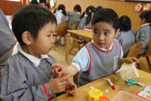 年長の子ども達:「じゃあ、見ないようにしよう(笑)」