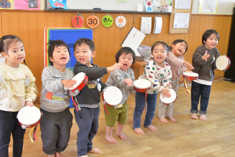 保育室で合奏の練習!