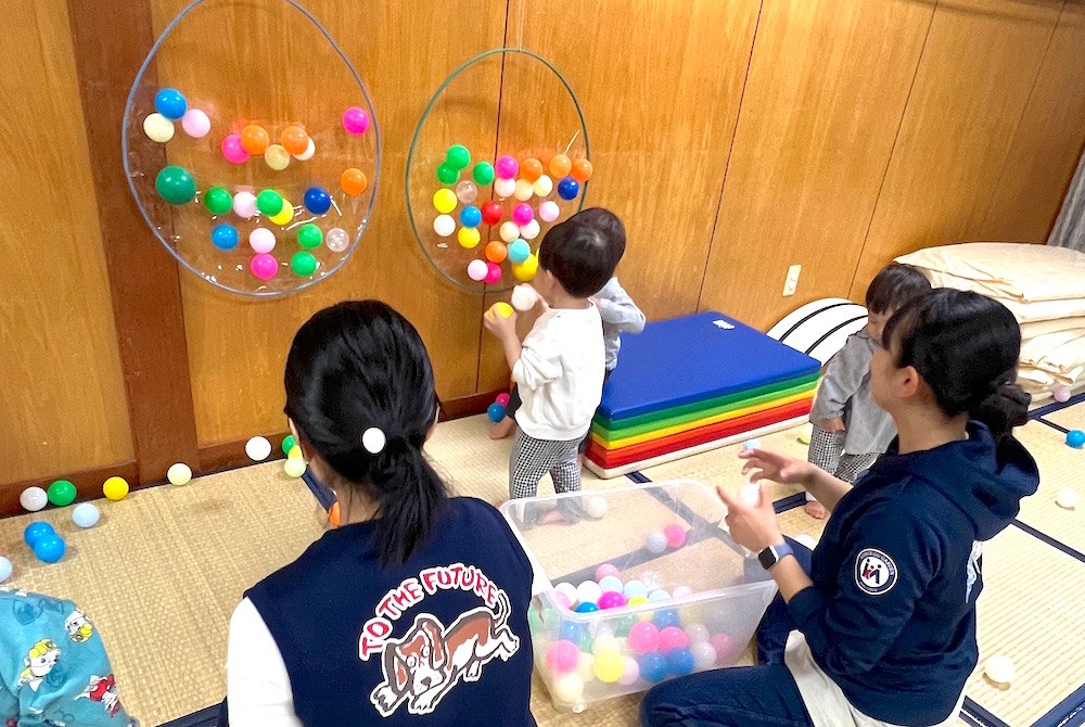 ボールを的に投げて遊びました。