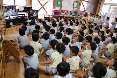 年少組は忍者に変身しながらキンダ―ホールへ行き、