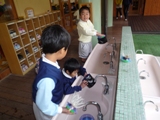 「今日は水替えだ~」…と大喜びの子ども達です♪