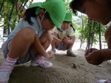 ↑今日は年長さんがトトロの森の隅っこで泥団子を作ってました。真剣ですね~!!