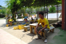 ↓ さみしさを隠しきれない園長先生(逆光気味)