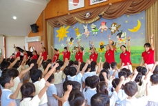 夏休みカレンダーを片手に、各クラスで思い出を発表していました。