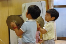 『鼓隊』 → スネアドラムやシンバルなど、打楽器を持ってみんなで奏でます。