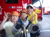 最後に「消防士になりたい人?」と聞くと女の子もたくさんの手が挙がっていました(*^_^*)